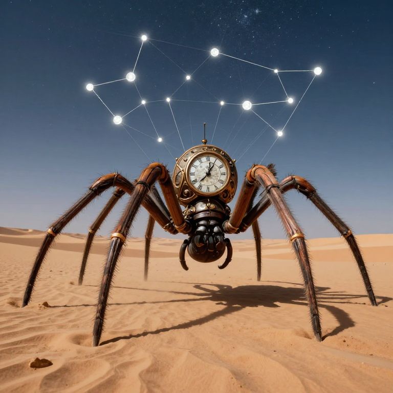 Clockwork Spider Weaving Celestial Constellations