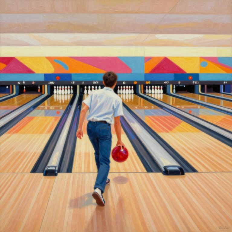 Just What Is It That Makes TodayS Homes So Different, So Appealing? A colorful, impressionist painting of a person bowling in a bowling alley.,