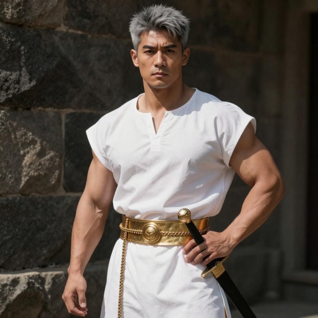 Blonde Muscular Hero with Red Gemstone