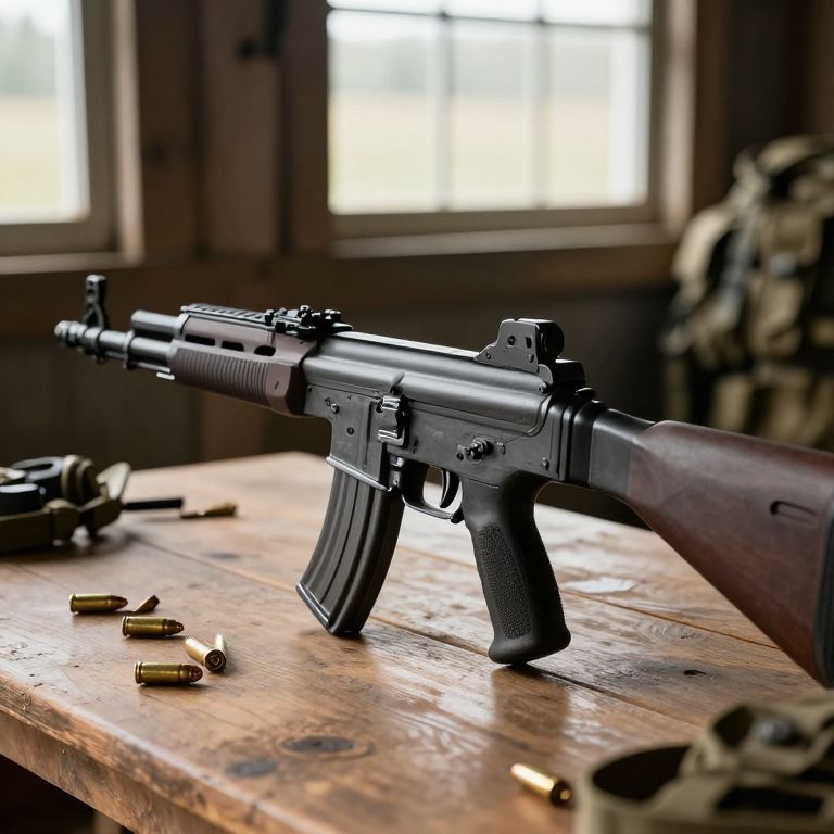AKM Assault Rifle on Rustic Table