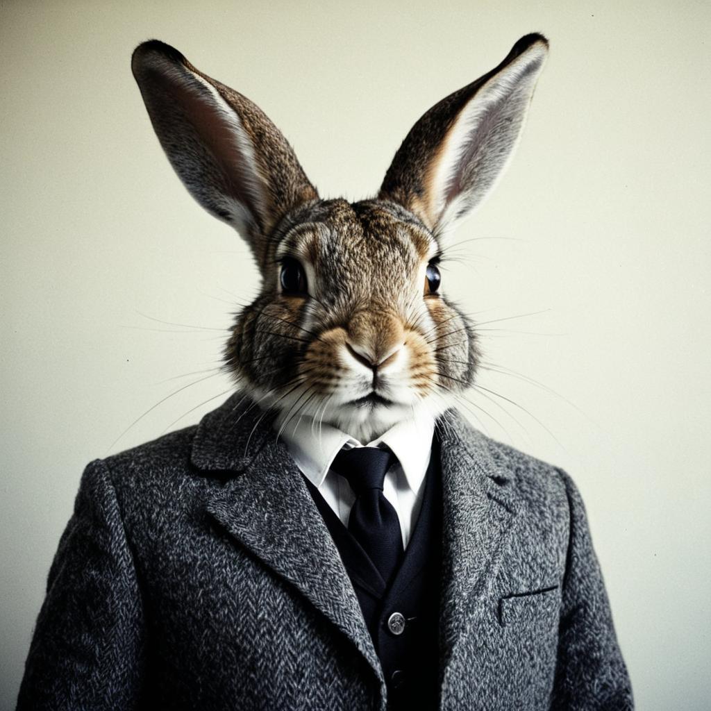 A digitally created anthropomorphic penguin character wearing a white dress shirt with a blue striped tie and matching pocket square, set against a plain light gray background. The penguin has a detailed, realistic texture with a bright orange beak and expressive eyes.