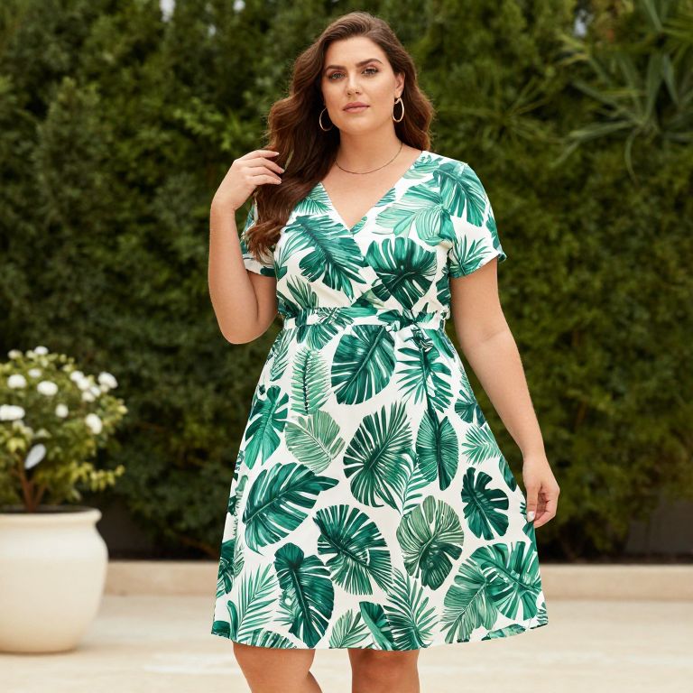 Leafy Print Plus Size Dress