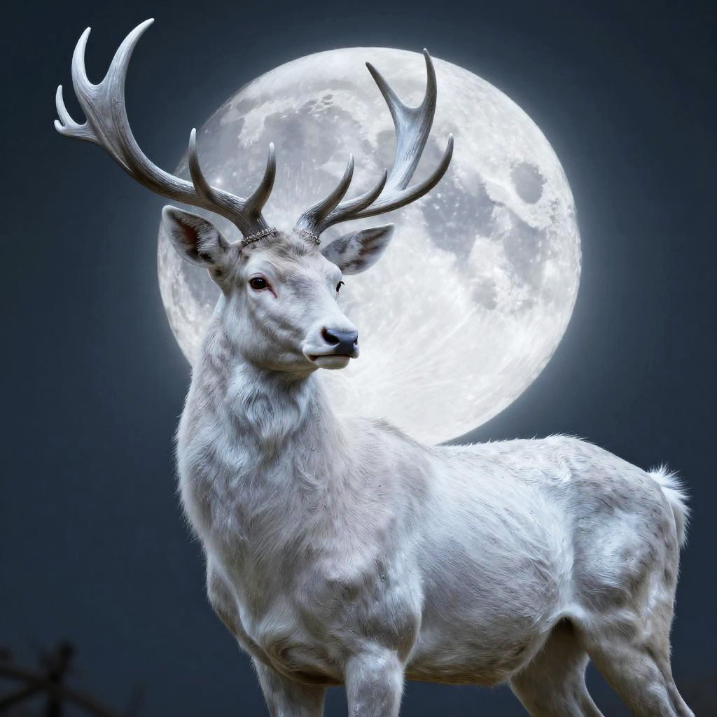 Ethereal White Stag Portrait in Moonlight