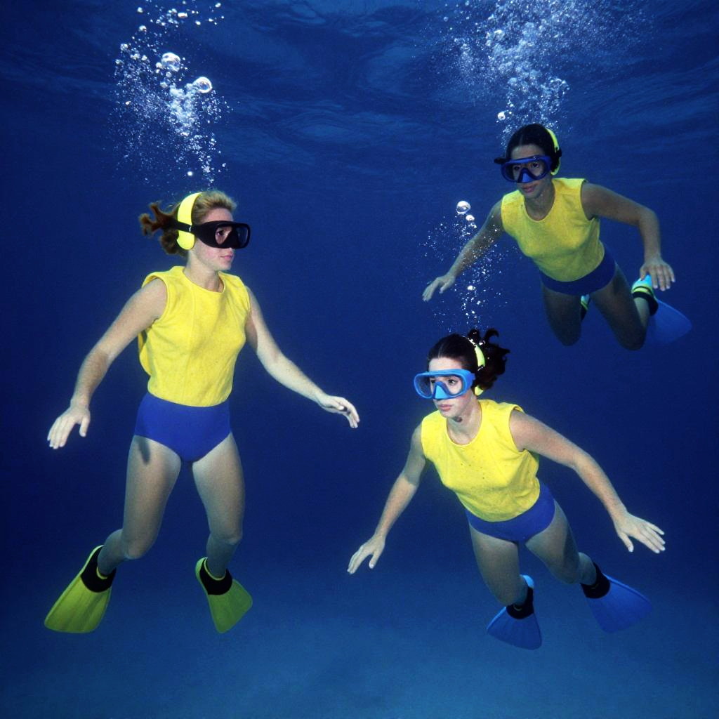Vibrant Underwater Explorers in Retro Style