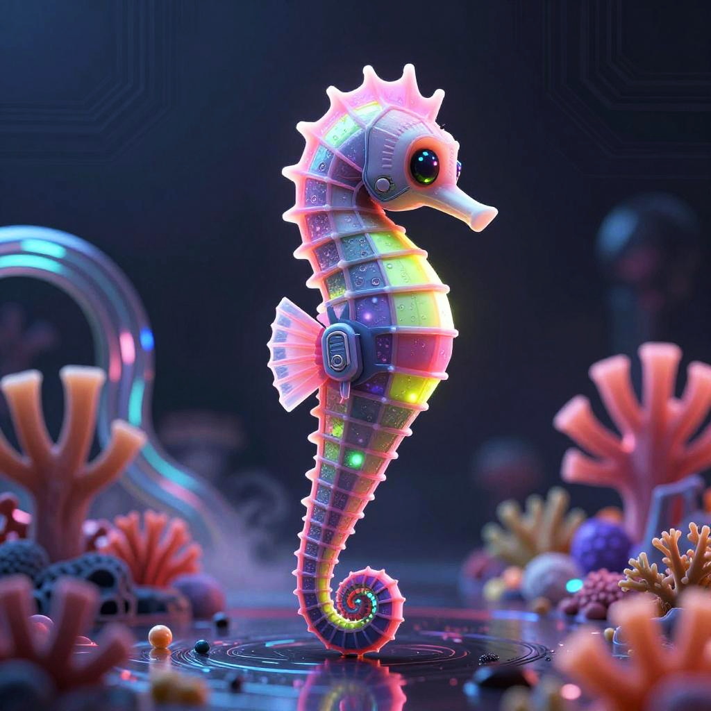 Futuristic 3D Neon Mecha Seahorse