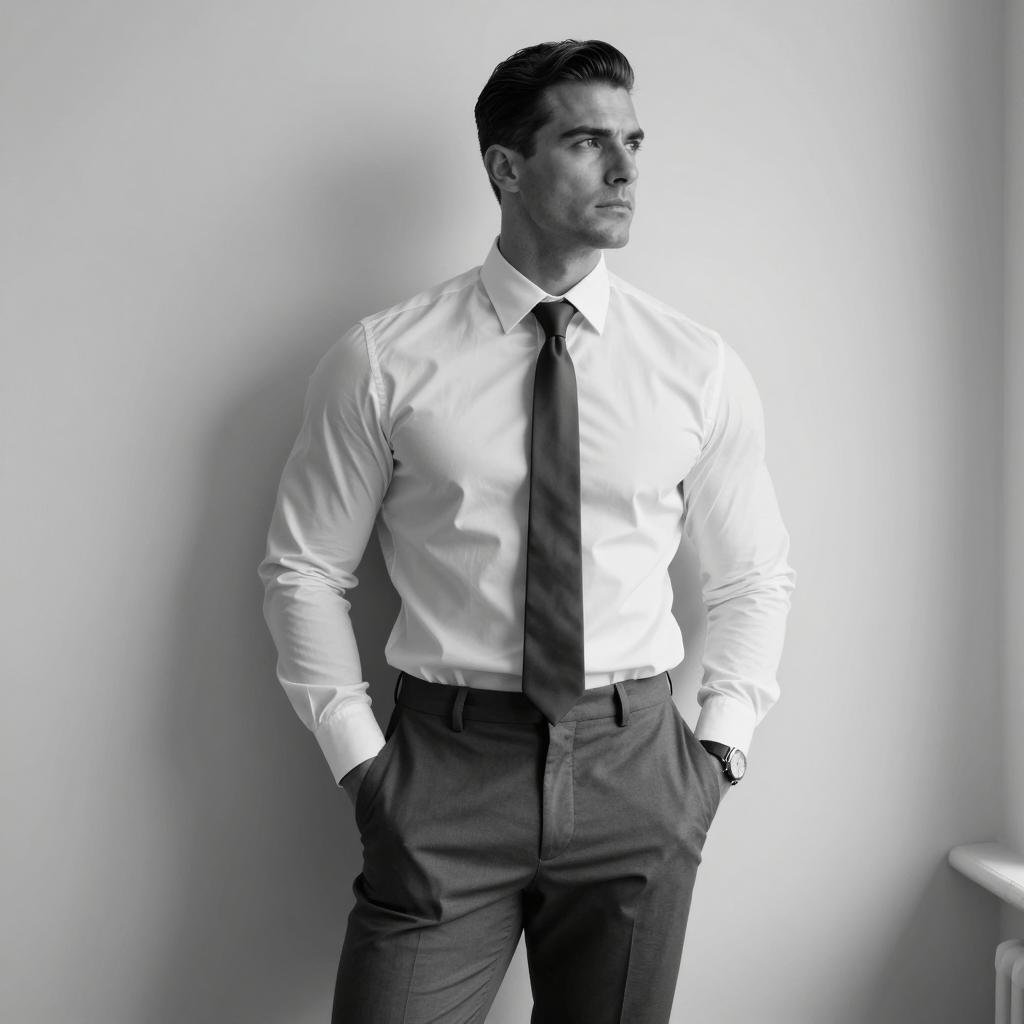 A confident man in a stylish blue suit stands in the foreground with a vibrant collection of comic book covers adorning the walls behind him, exhibiting a pop art inspired ambiance.