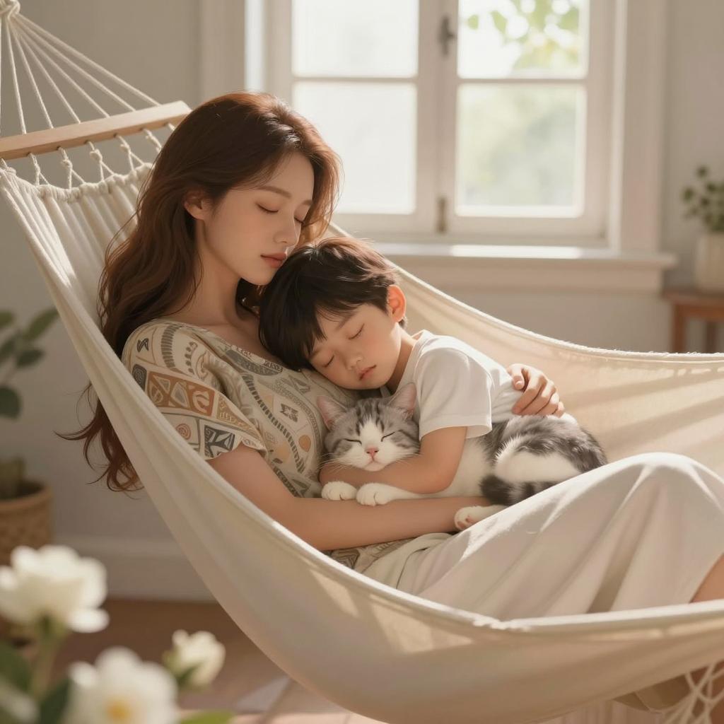 Cozy Moment: Woman and Tabby Cat