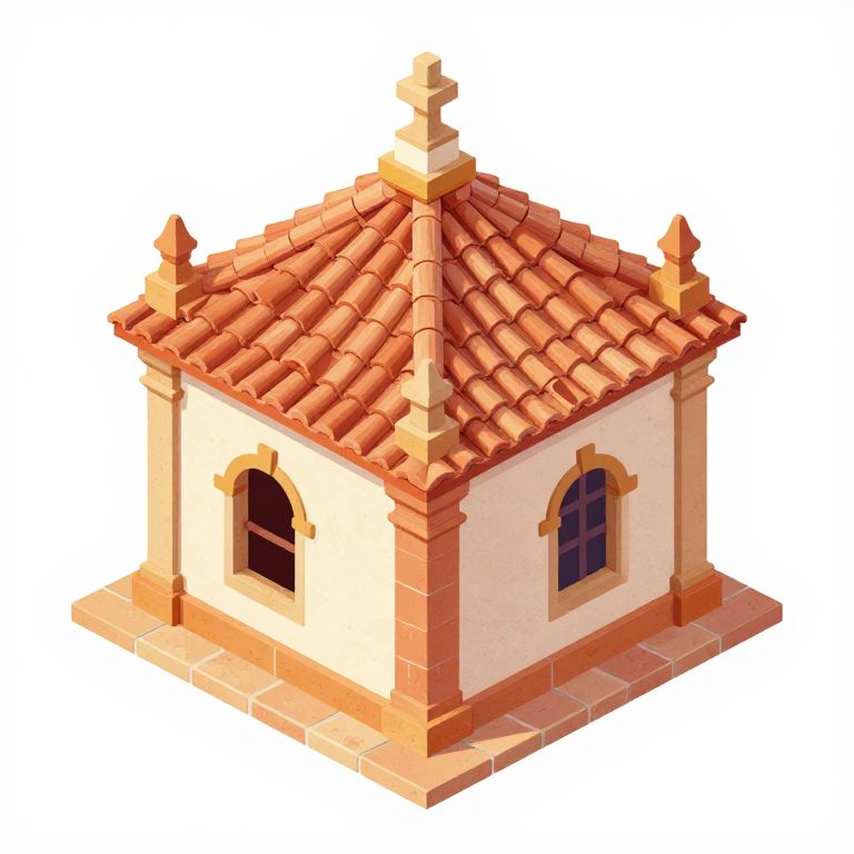 Flamboyant tejado de casa medieval, con tejas, colores ocres. Tile cuadrada para juego de mesa, ilustración,