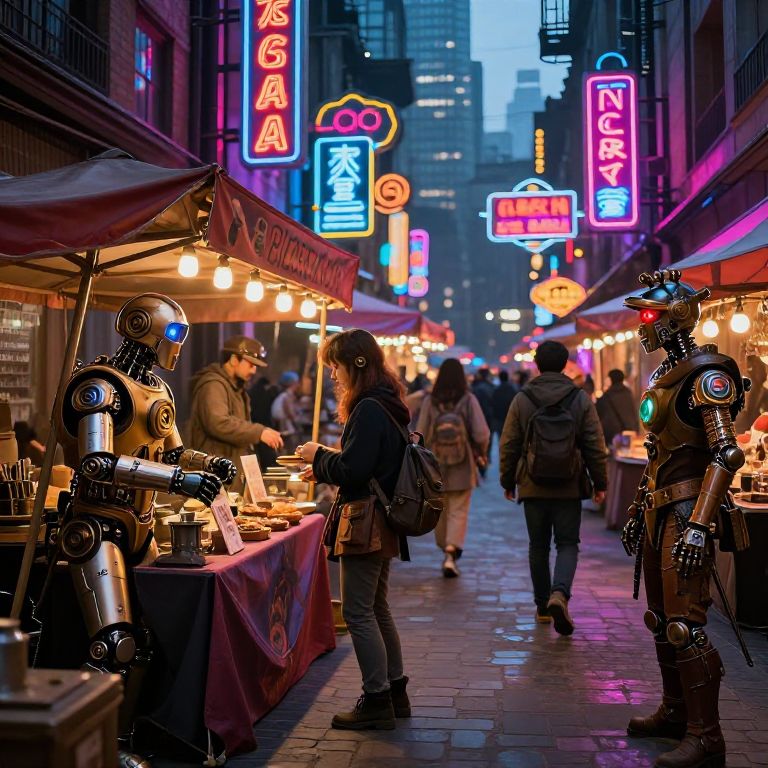 Neon Steampunk Robotic Street Market