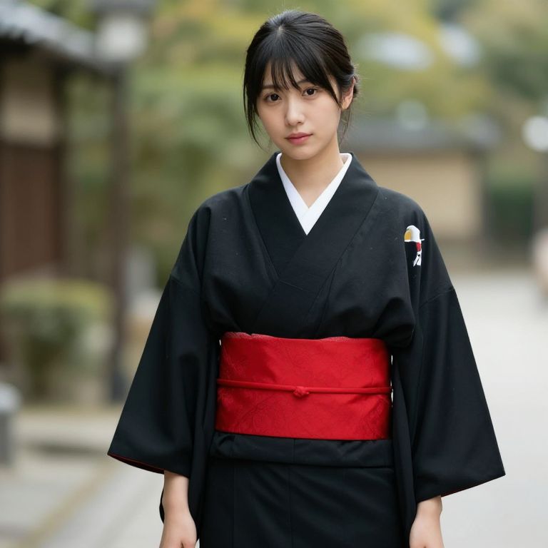 Woman in Black Kimono and Red Dress