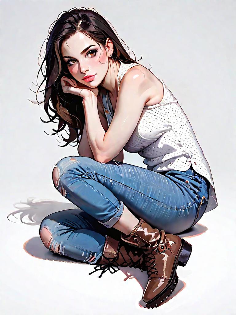 1girl, source_comics, realistic face, full body shot, Woman, edgy, black faux leather pants, skinny fit, grey textured hoodie with faux leather sleeves and a hood, contrasting black zipper, black fitted v-neck t-shirt with strap detail at the neckline.