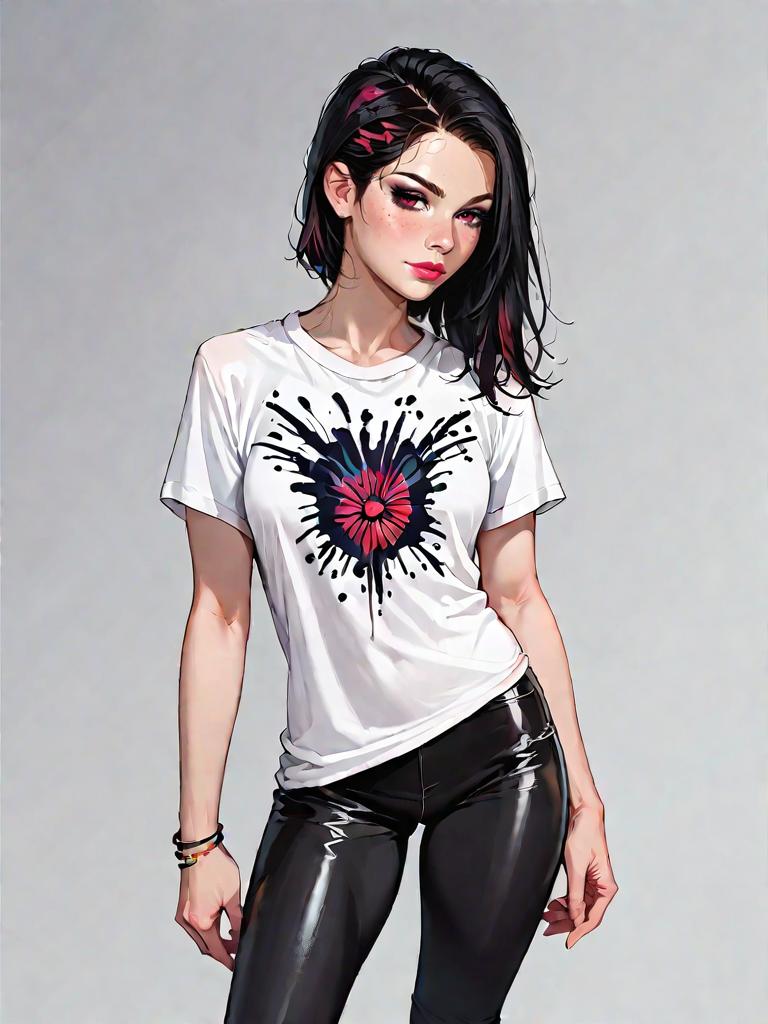 Edgy Woman with Black Faux Leather Pants and Graphic T-Shirt