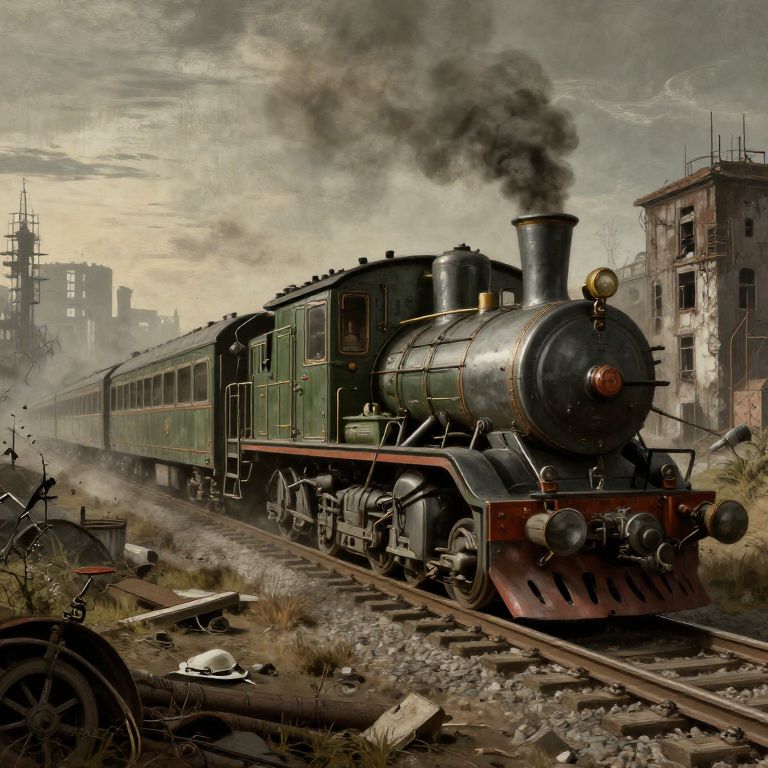 Dieselpunk Train Through Abandoned City