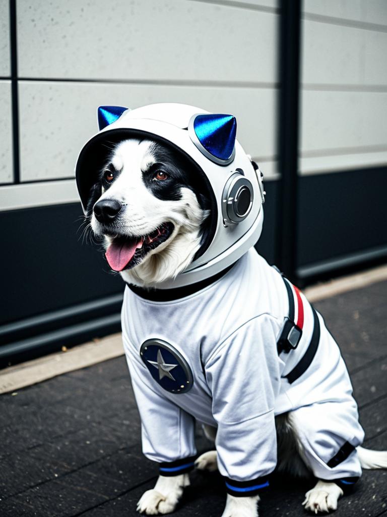 Man cosplay. Cosmo the Spacedog costume. Realistic photo