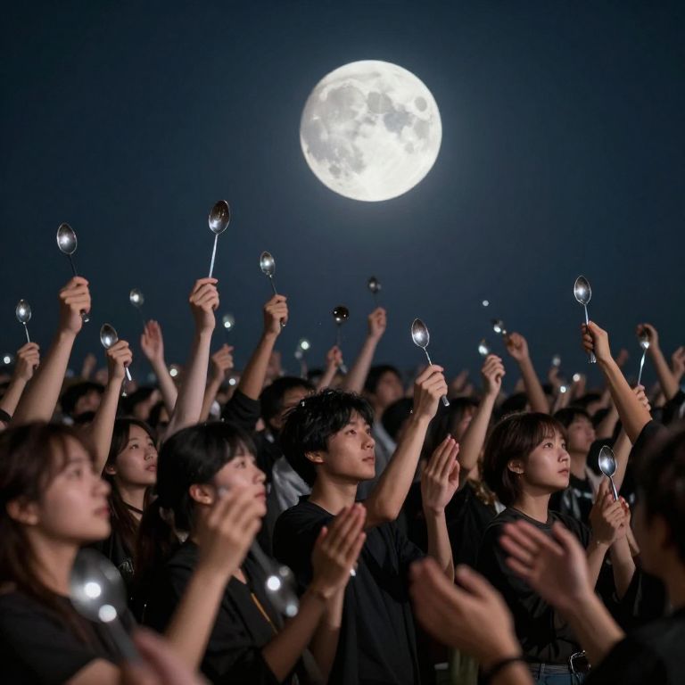 An army of whispering spoons clink in perfect harmony, forging moonlight into melodies that bend gravity and lift entire orchestras into the air.