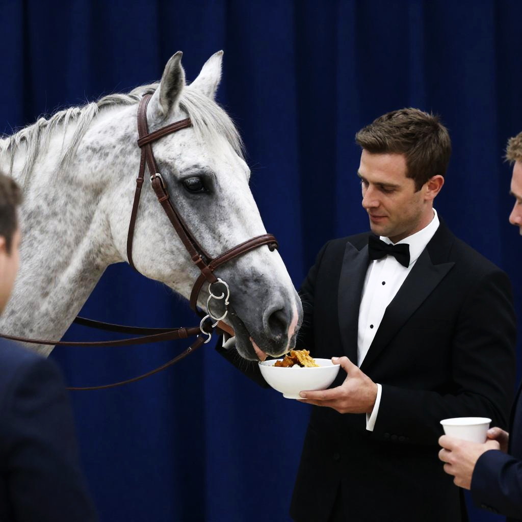 Man Shouting at Brown Horse Outdoors