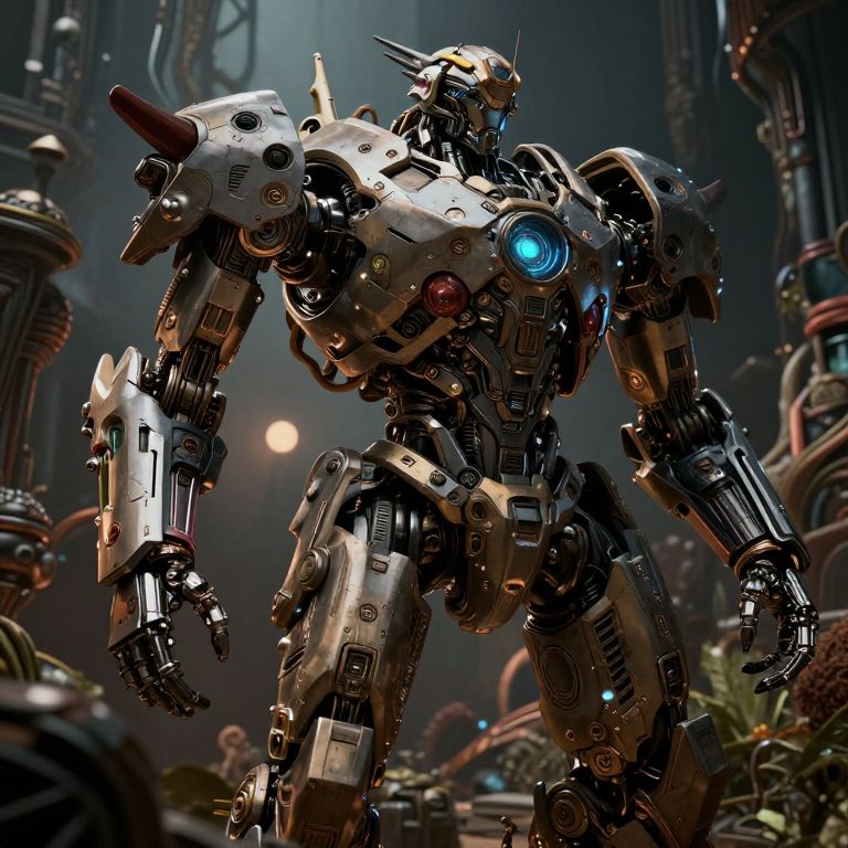 The image presents a highly detailed and intricate scene, likely a digital creation using Unreal Engine, with a strong emphasis on photorealism and cinematic aesthetics. The composition is epic, featuring a complex arrangement of mechanical and organic elements intertwined in a visually striking manner. The scene is bathed in a moody lighting scheme, with a mix of natural and artificial light sources, creating a dramatic and immersive atmosphere. The textures are hyper-realistic, with a focus on the interplay of light and shadow, enhancing the three-dimensional depth and realism of the objects. The colors are beautifully coded, with a palette that enhances the overall mood and enhances the visual impact of the scene. The image is shot in an ultra-wide angle, with a shallow depth of field that draws attention to the central elements while softly blurring the background, adding to the sense of depth and focus. The scene is a testament to the power of advanced rendering techniques, with ray tracing, global illumination, and other post-processing effects contributing to the stunning visual quality.