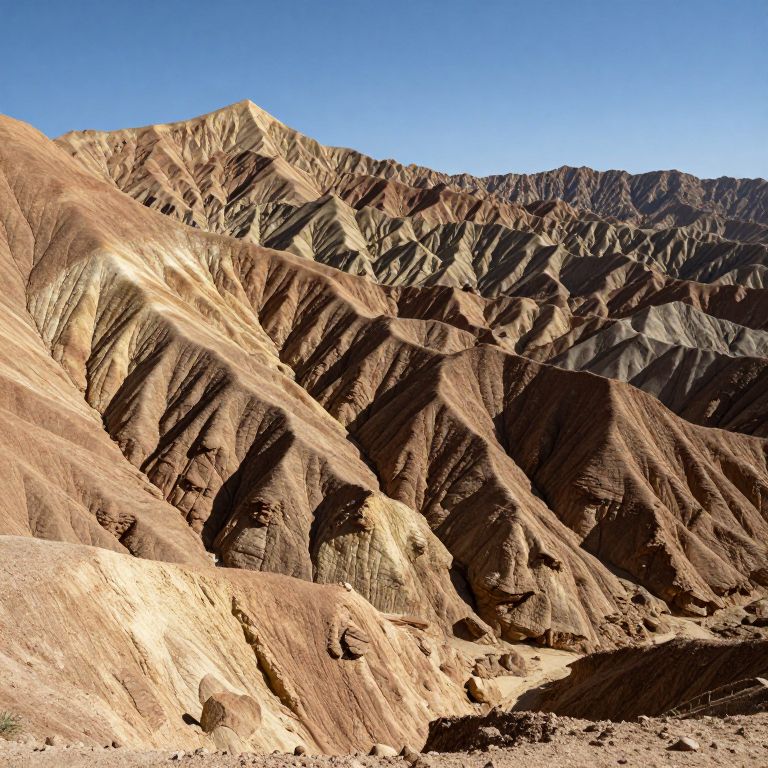 Mountains erode backward, revealing younger landscapes from the future, as geological time folds unexpectedly upon itself.