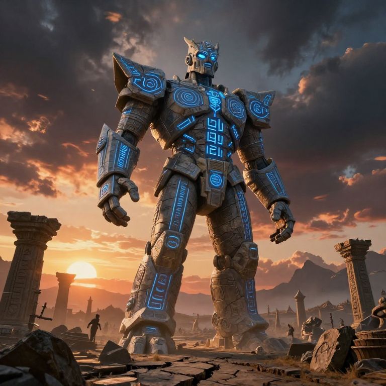 Colossus with Glowing Runes on Ancient Battlefield