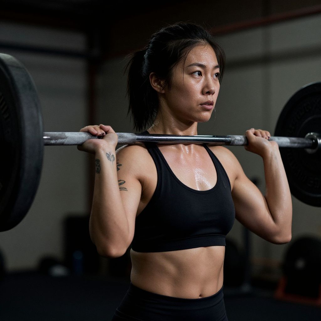 Muscular Japanese Woman Lifting Weights
