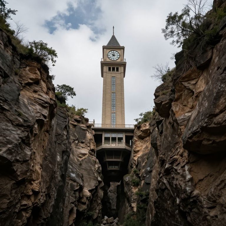 Inverted Clock Tower Over Chasm