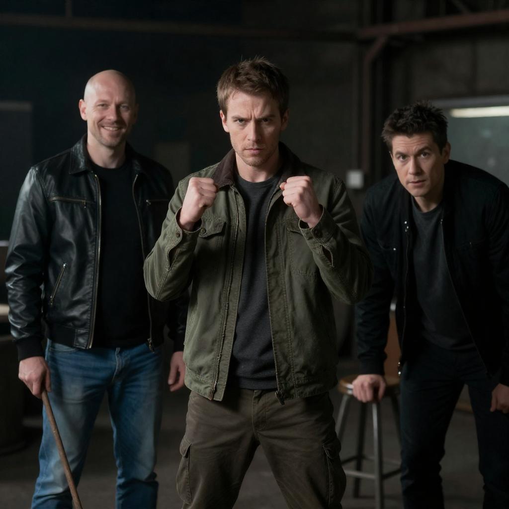 Three Men Posing Outdoors Under Clouds