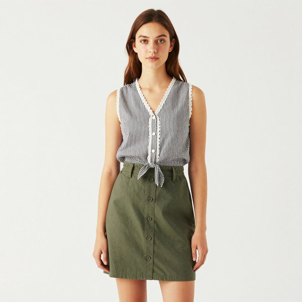 Young Woman in Leopard Print Skirt
