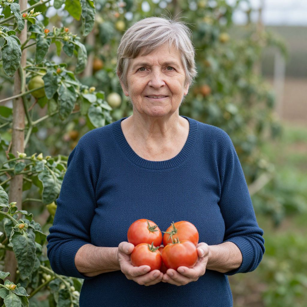 Portrait Of Senior Woman Holding Tomatoes While Standing Amidst Plants