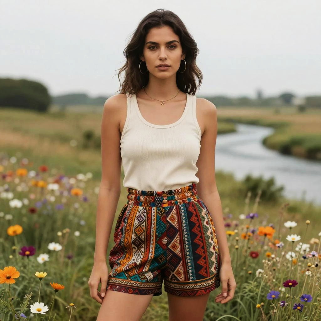 Boho Chic Woman in Wildflower Meadow