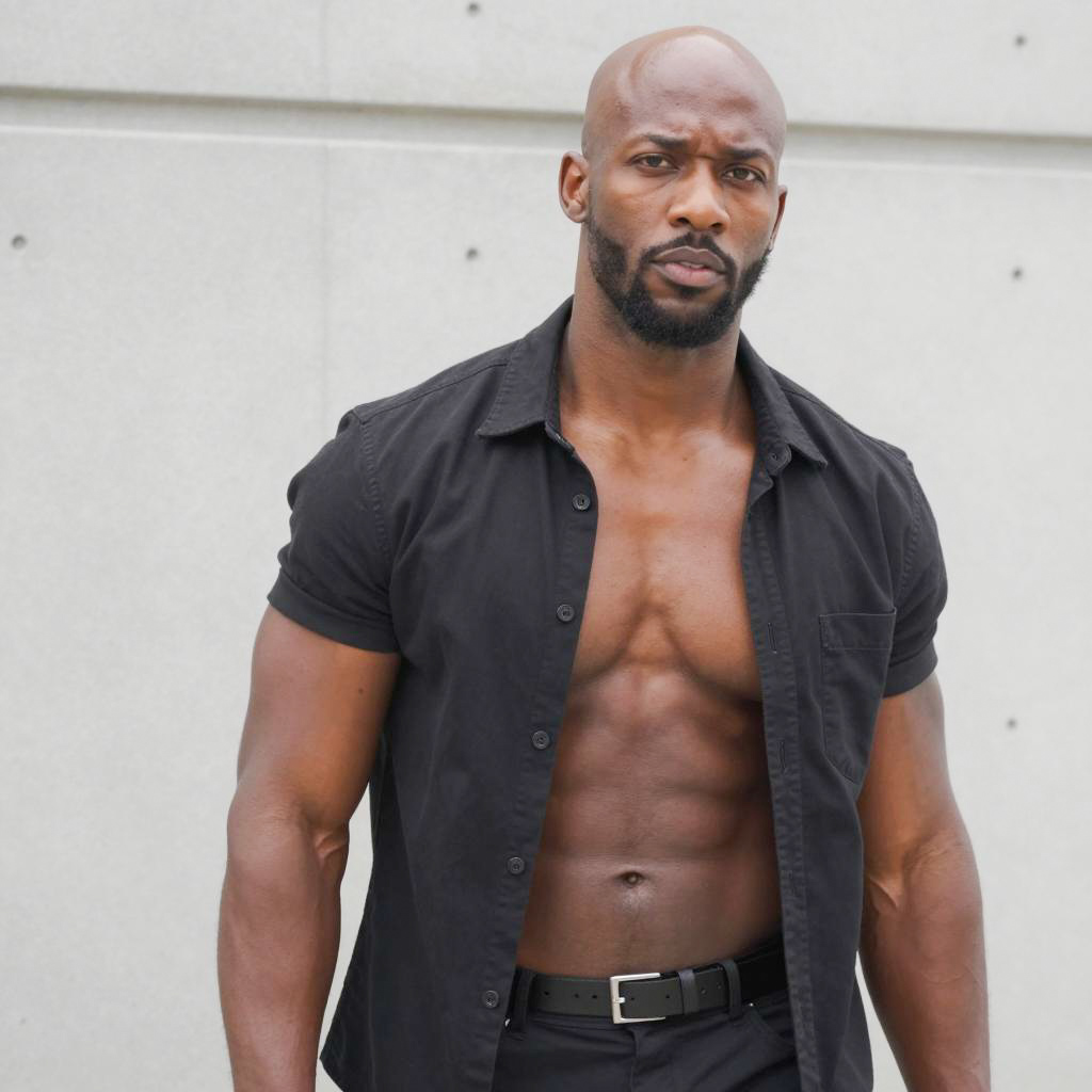 Adult tough boxer costume, photorealistic, muscular black man, standing in boxing ring, wearing red hooded outfit, matching red boxing gloves, large defined biceps, confident expression, sunlight from top left, brick wall background, red ropes, daytime, brown and beige brick wall, medium shot, dramatic lighting, sporty attire, boxing gloves, hooded outfit, intense look, athletic physique, outdoors boxing ring, realistic ures, focused stance, strong build, red and brown color scheme