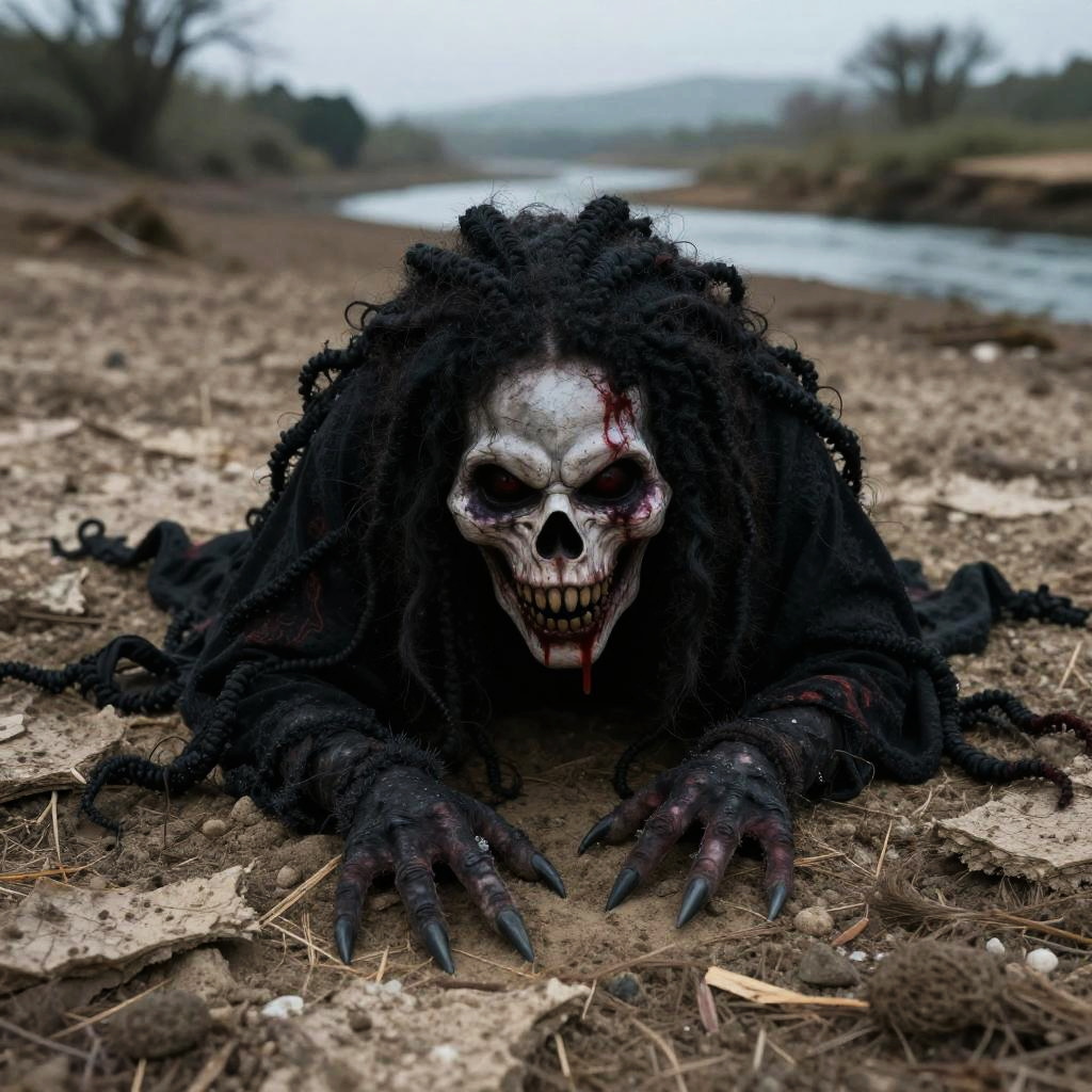 A spooky harpy hiding in a abandoned airfield, eerie atmosphere, high detail