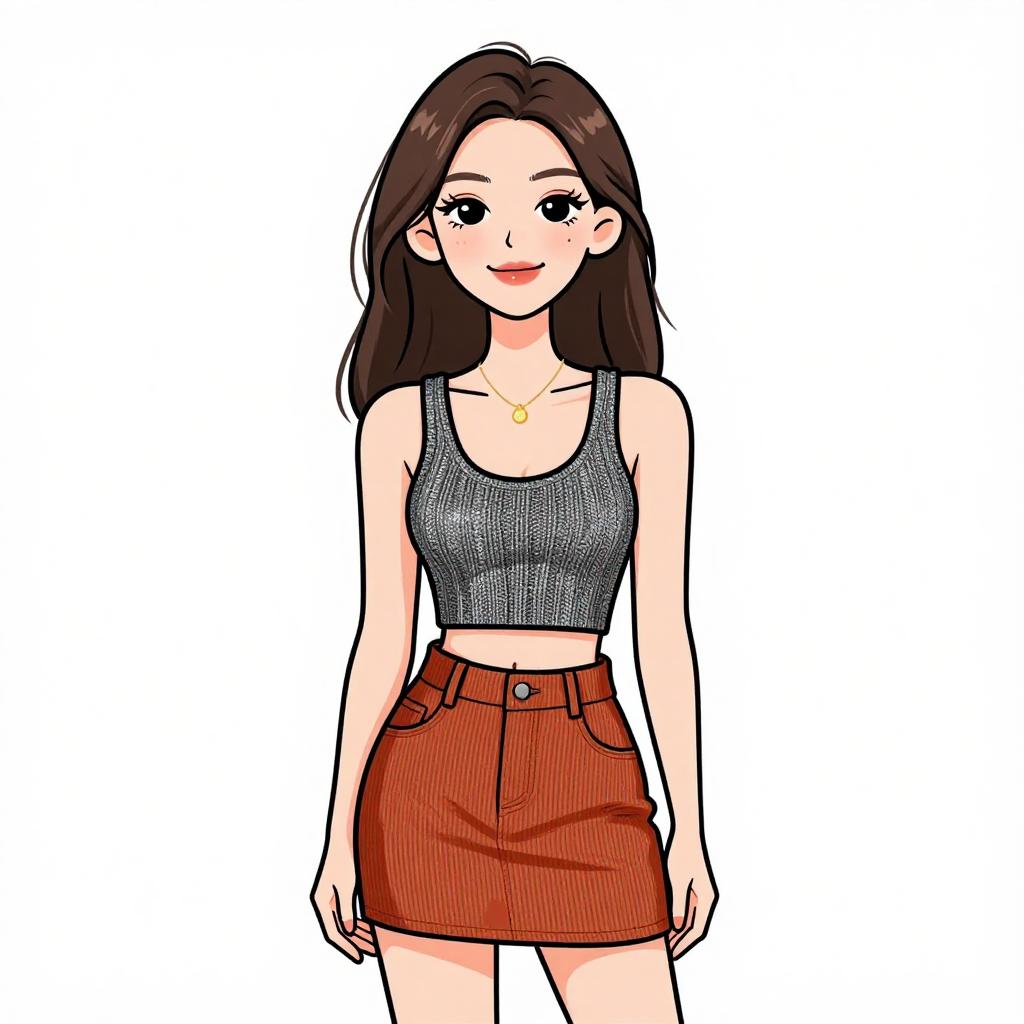 Woman with pretty face and pretty hair. smiling Woman, casual summer style, black halter neck bikini top, low-rise cheeky shorts in gray with thin white pinstripes, front pockets, frayed hem, layered silver pendant necklaces, white studio background --sref 1467