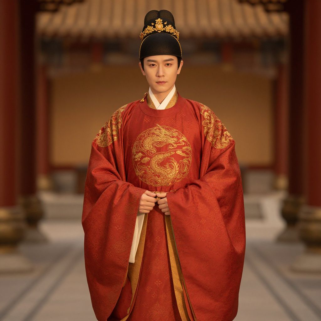 "Tang Dynasty Robe, image of a man in a red and gold outfit"