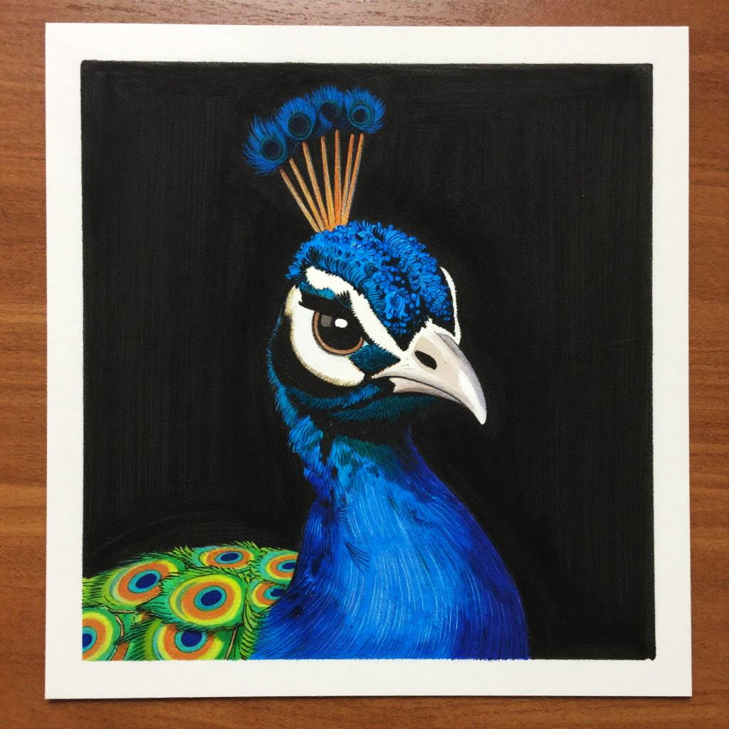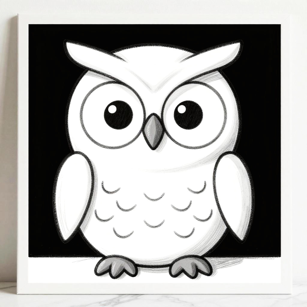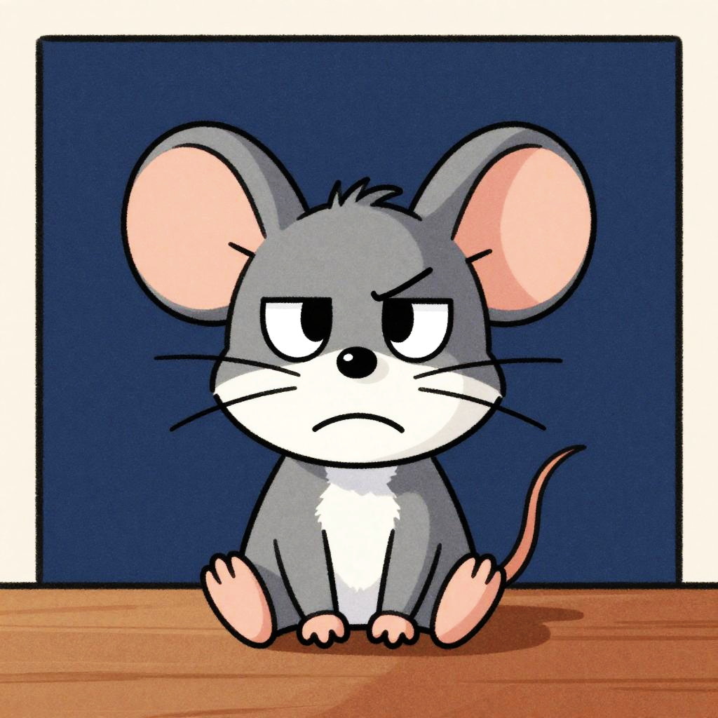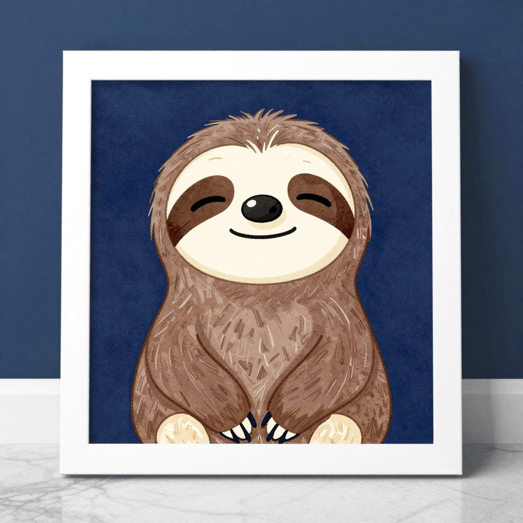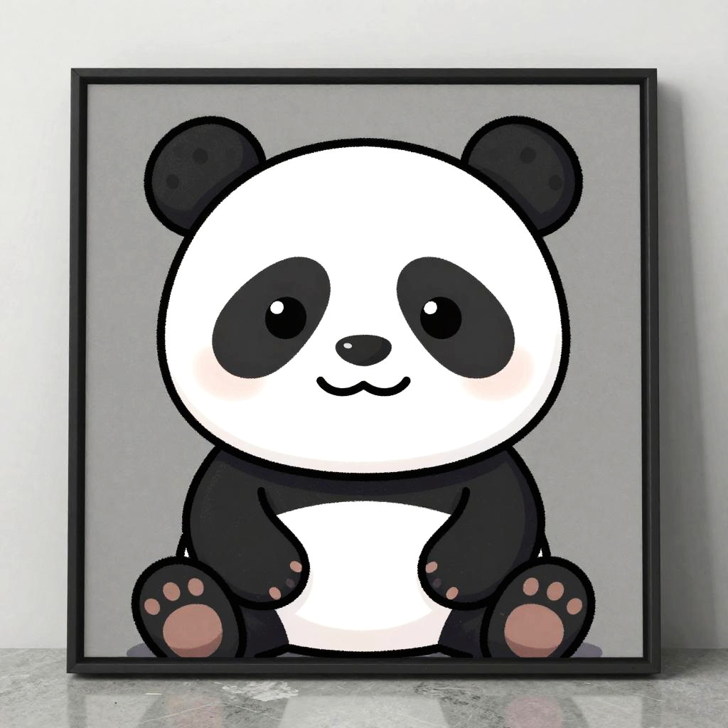 This is a digital drawing of a cartoon dog, with a happy chuckle and large, rectangular eyes for a quirky look. Bright colors with crisp white accents along the face and edges. The character sits against a muted forest green background, bordered by a clean white frame and placed on a rustic wooden tabletop. Rendered in a polished aesthetic with paper grain aesthetic with subtle paper grain, bold linework, and a soft vignette.