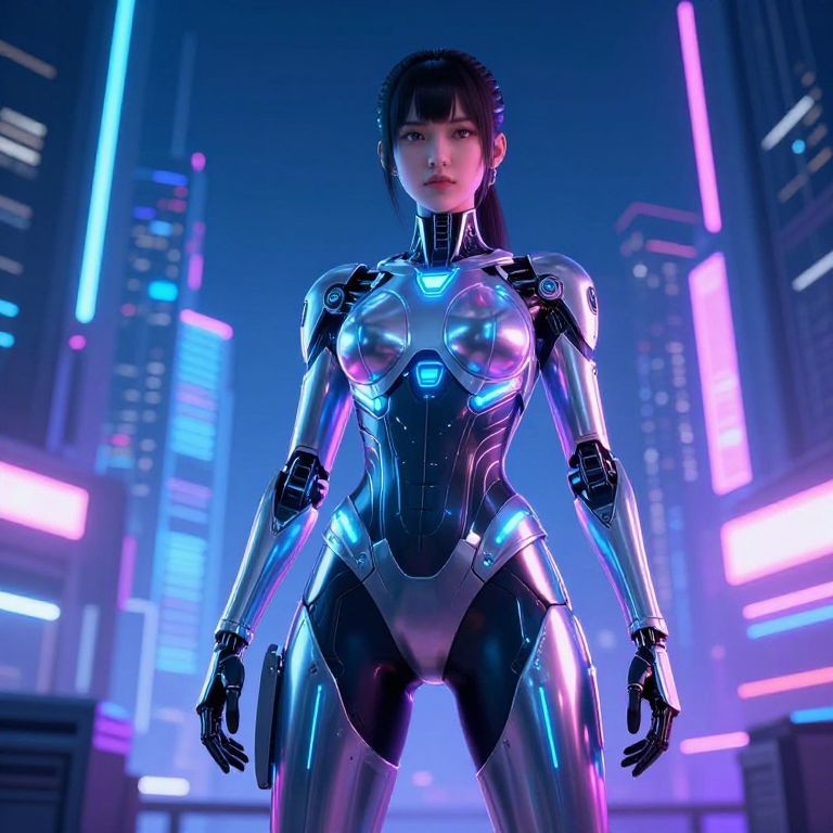 Realistic Female Cyborg Digital Portrait