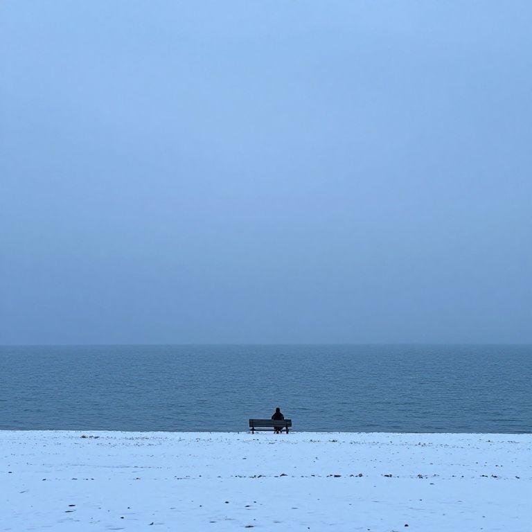 Where winter whispers its quiet embrace, the stillness of snow muffles the world, leaving only the echoes of solitude and the promise of renewal in the crisp, blue expanse of water and sky.