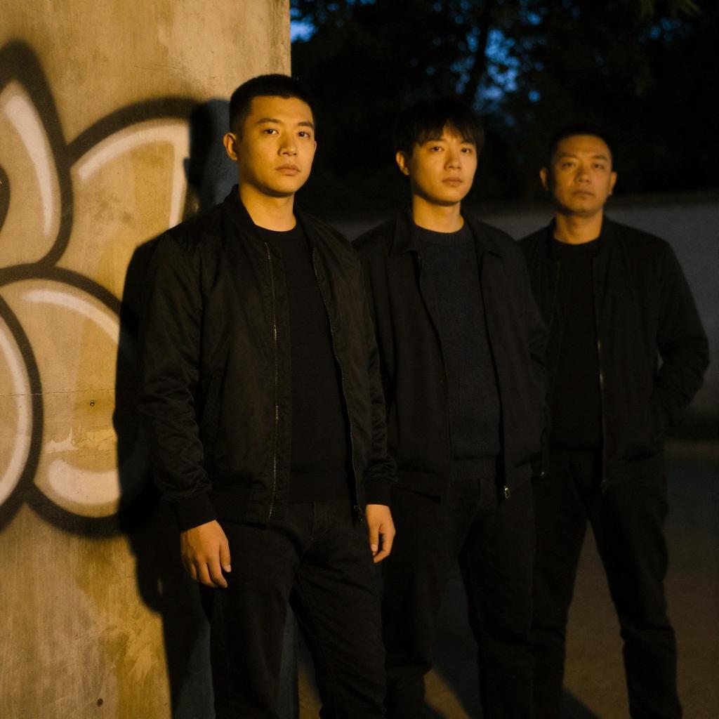 Serious Men Against Worn Wall