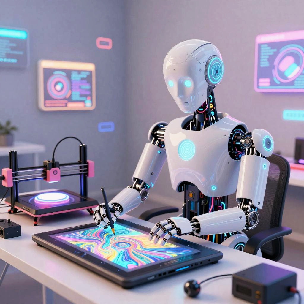 AI Illustrator Robot Creating Digital Masterpiece