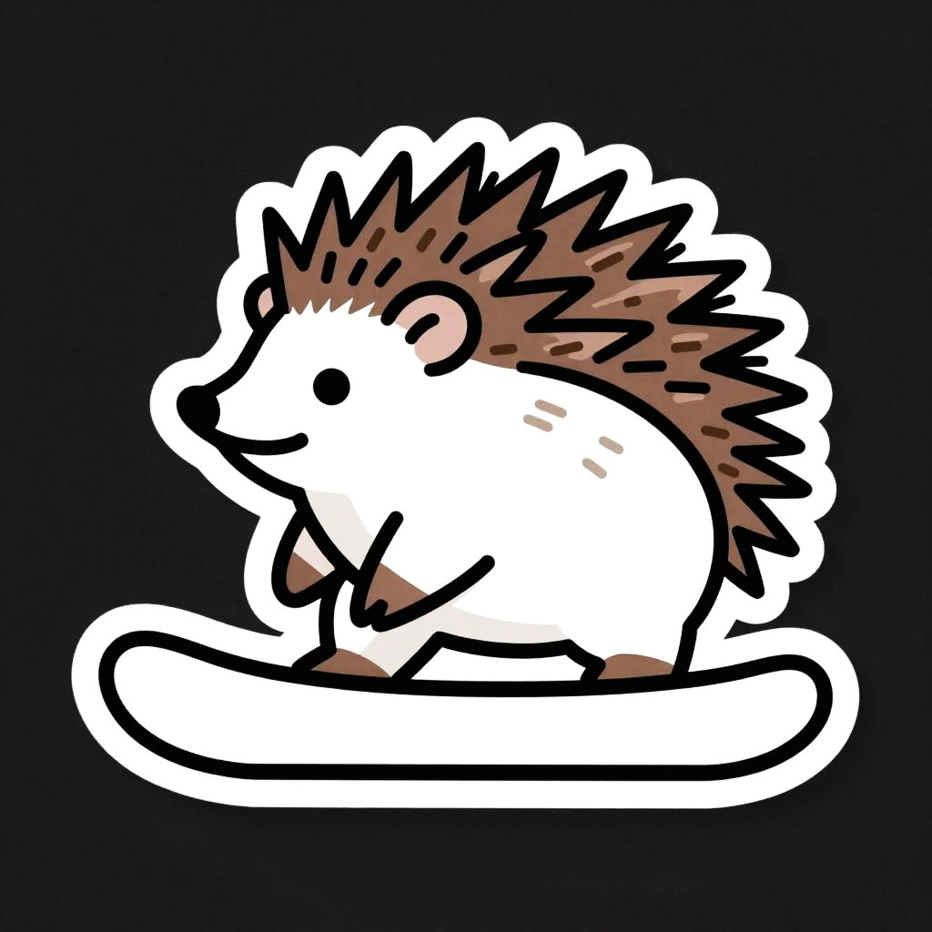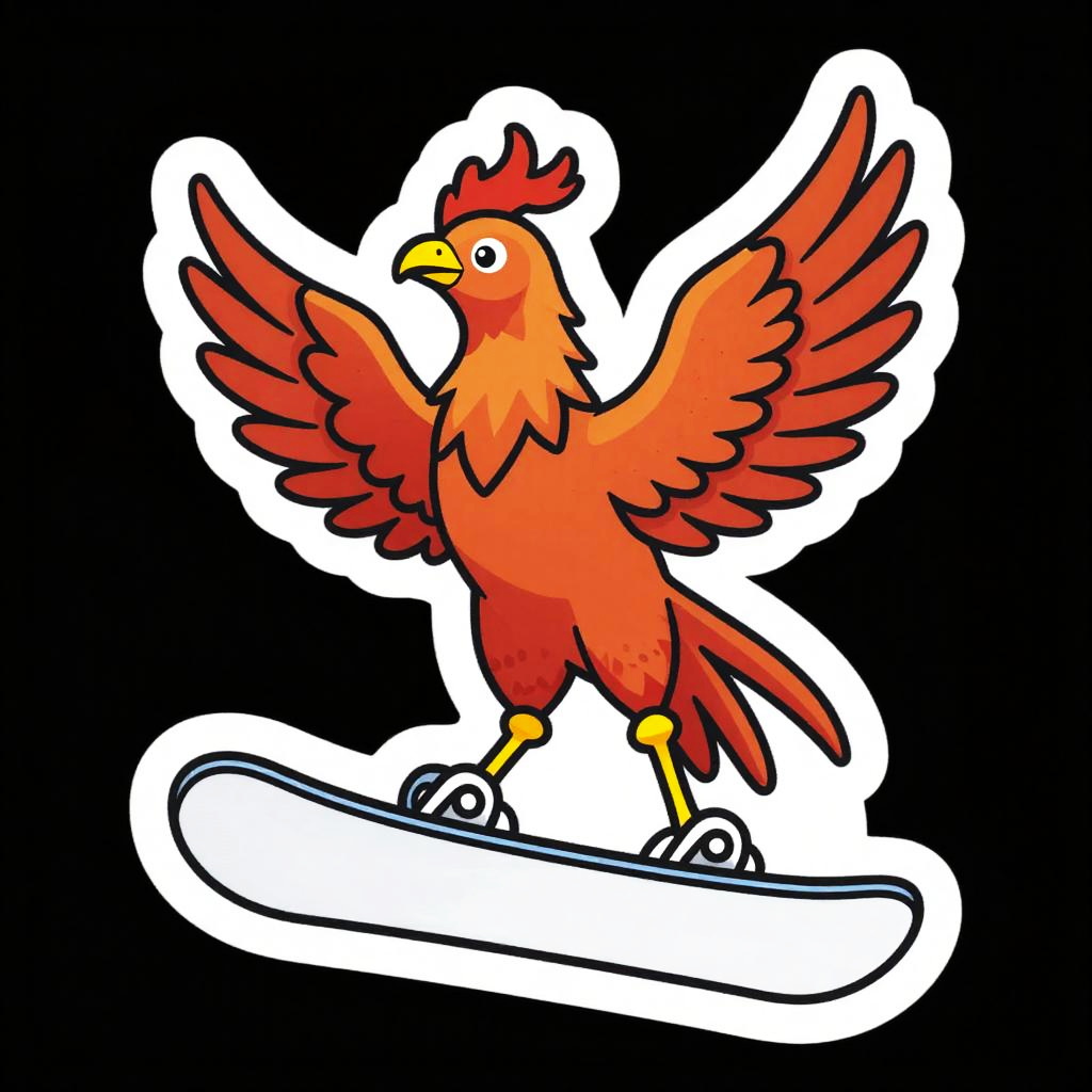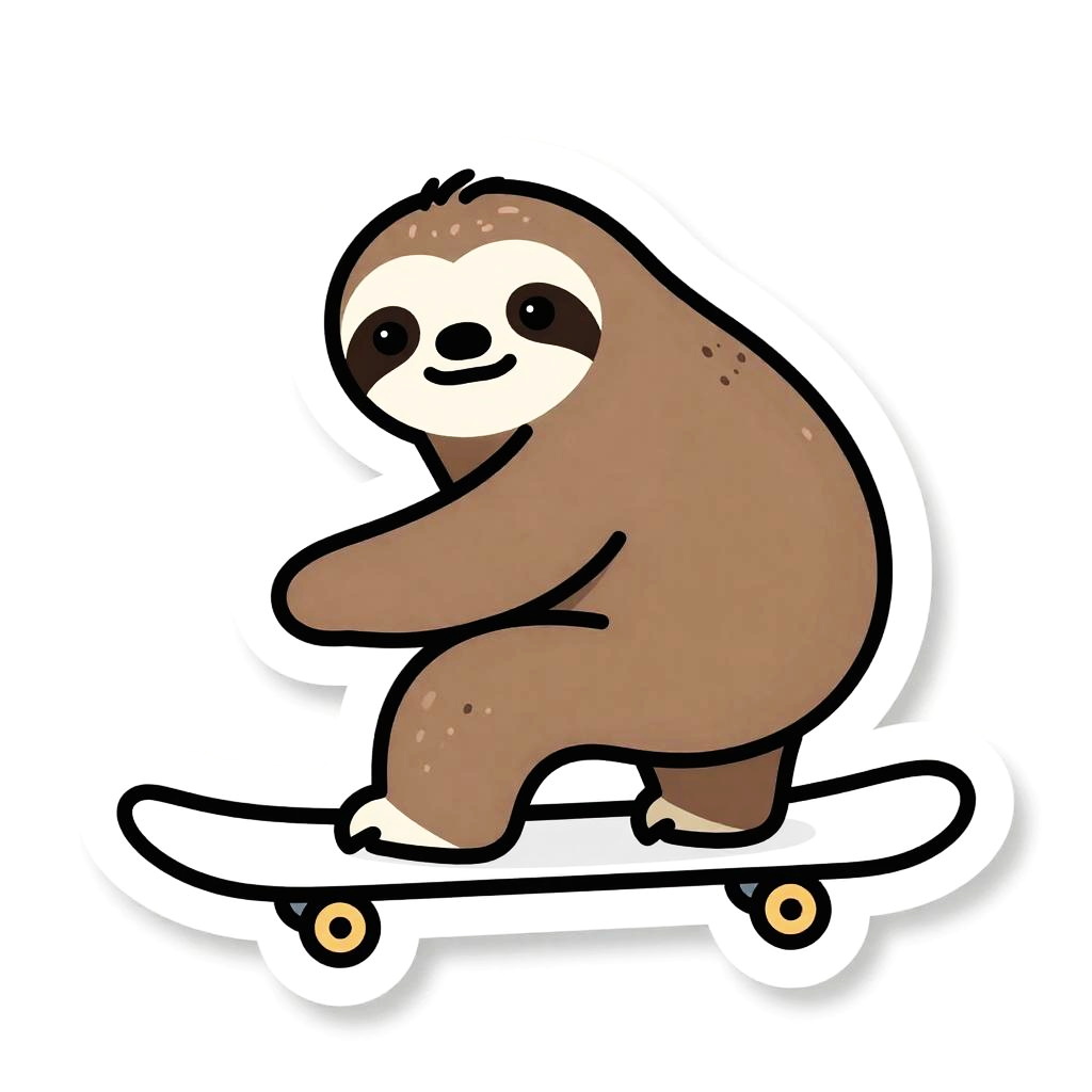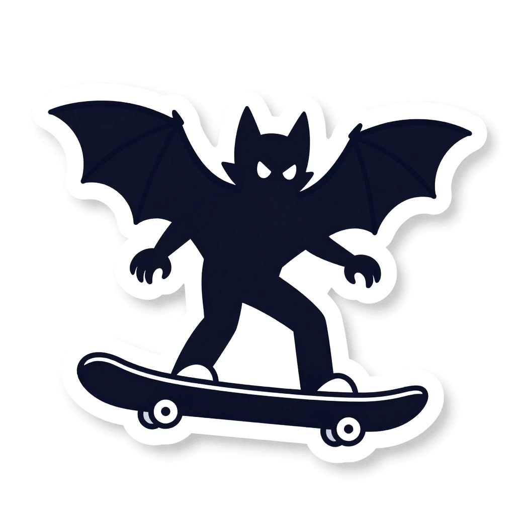 A cyborg riding a hoverboard, illustrated as a die-cut sticker. Simple, clean vector line art, with flat colors and a monochrome background. HDR, ultra-detailed, crisp outlines, cartoon aesthetic