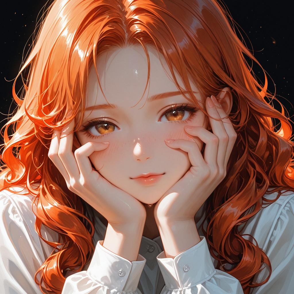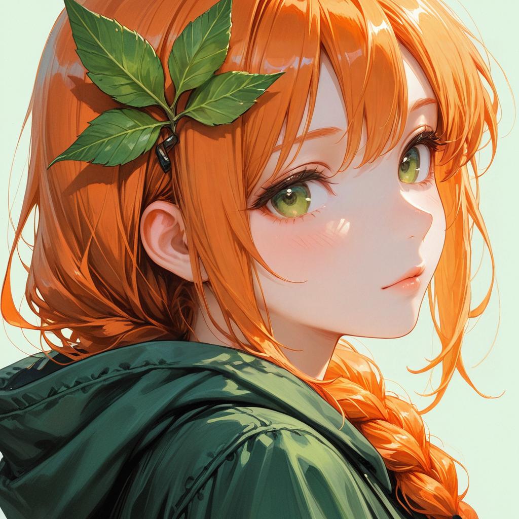 Portrait of Girl with Orange Hair and Leaf Hair Ornament