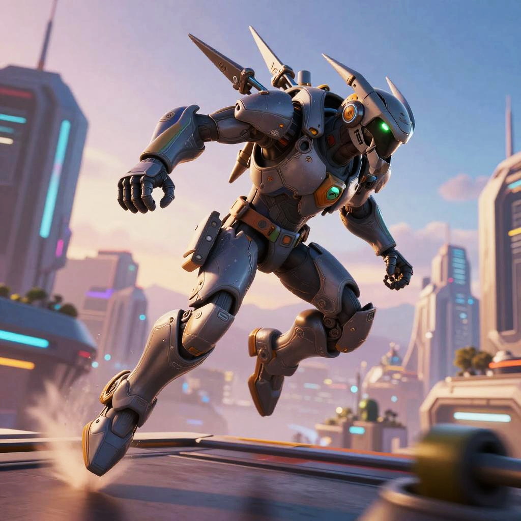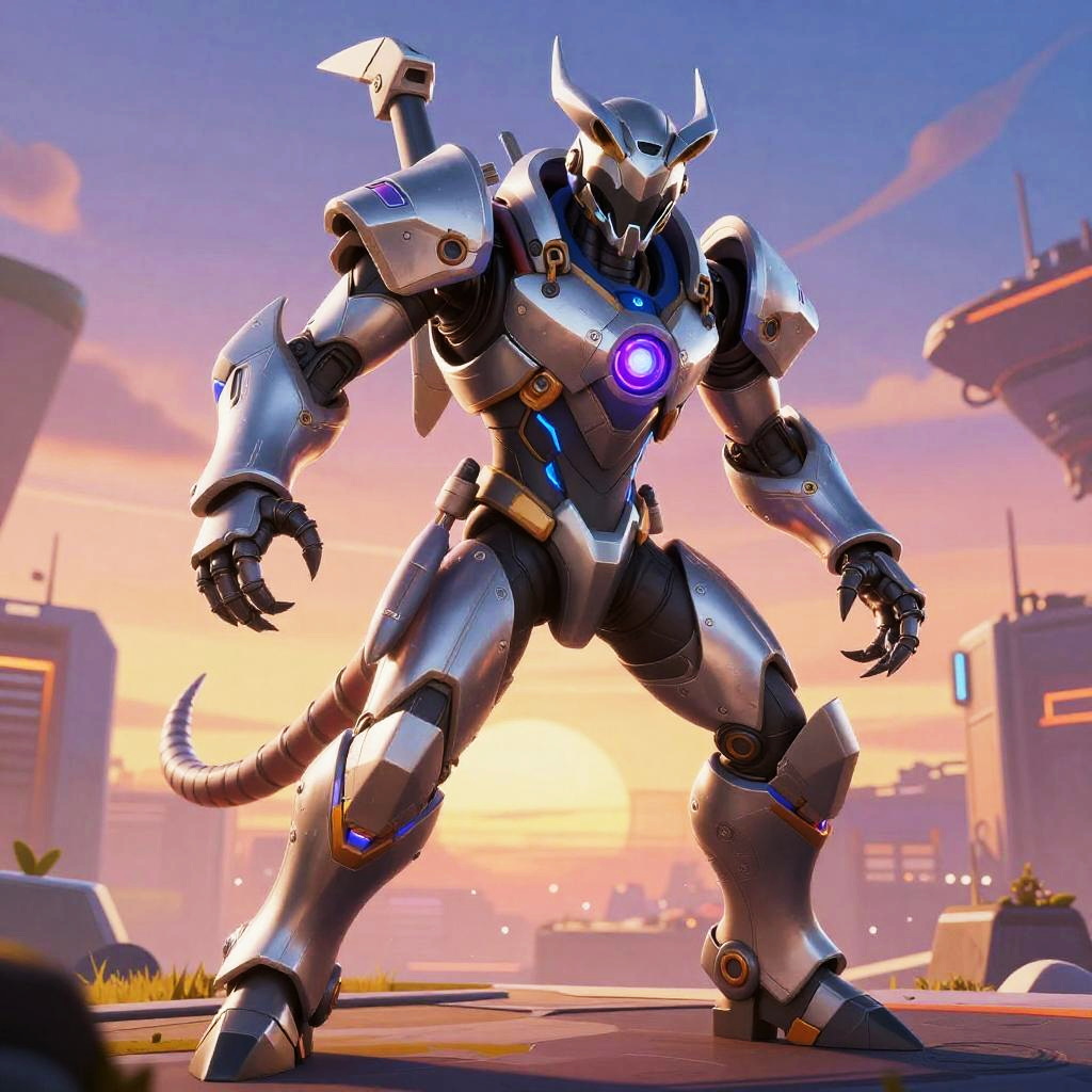 Fortnite scorpion, heroic figure with scorpion-themed armor, amidst desert battlefield, swirling sand and distant explosions, vibrant and detailed concept art style