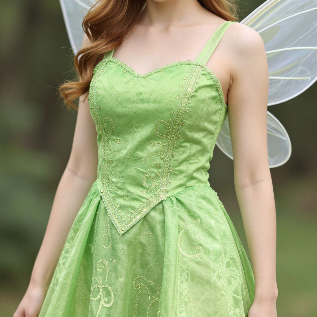 "Tinker Bell Clothes, a close up of a woman in a green fairy costume"