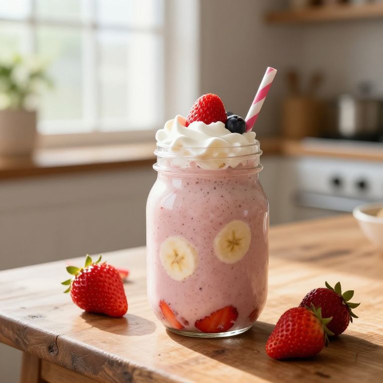 Bionico dessert arranged in a rustic wooden bowl overflowing with fresh tropical fruits like bananas, strawberries, pineapple, drizzled with creamy condensed milk and topped with shredded coconut, set against a vibrant, sunlit Mexican market background.