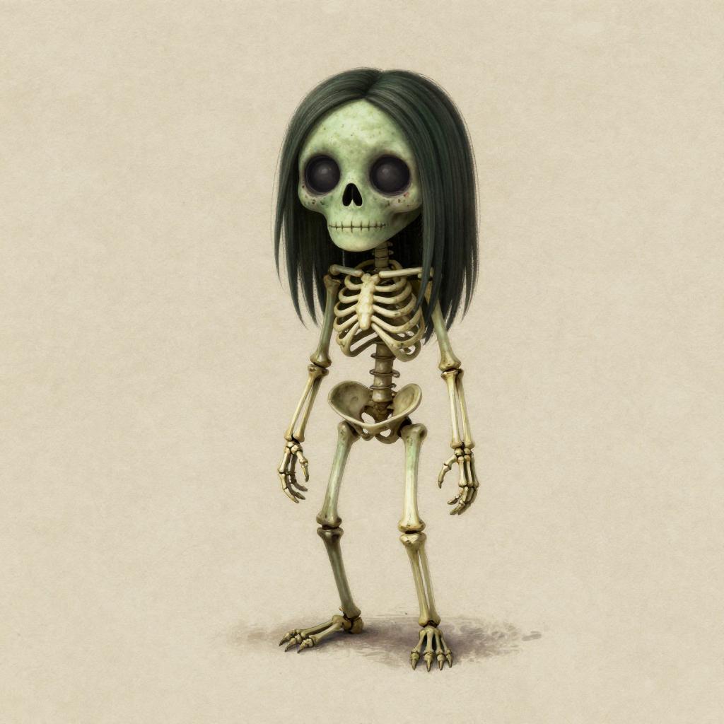 Illustration, cartoon, soothing tones, calm colors, (masterpiece, high quality, horror:1.3), (solo:1.1), a digital arf of a green skeleton girl, cover of a deathcore band, Extreme detail, photorealistic, morbid, paper texture, nsfw