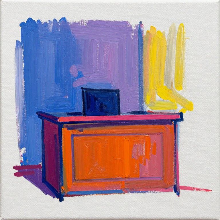 Courtroom Sketch abstract expressionism, acrylic on canvas, blue purple magenta orange yellow, playful strokes, canvas texture,