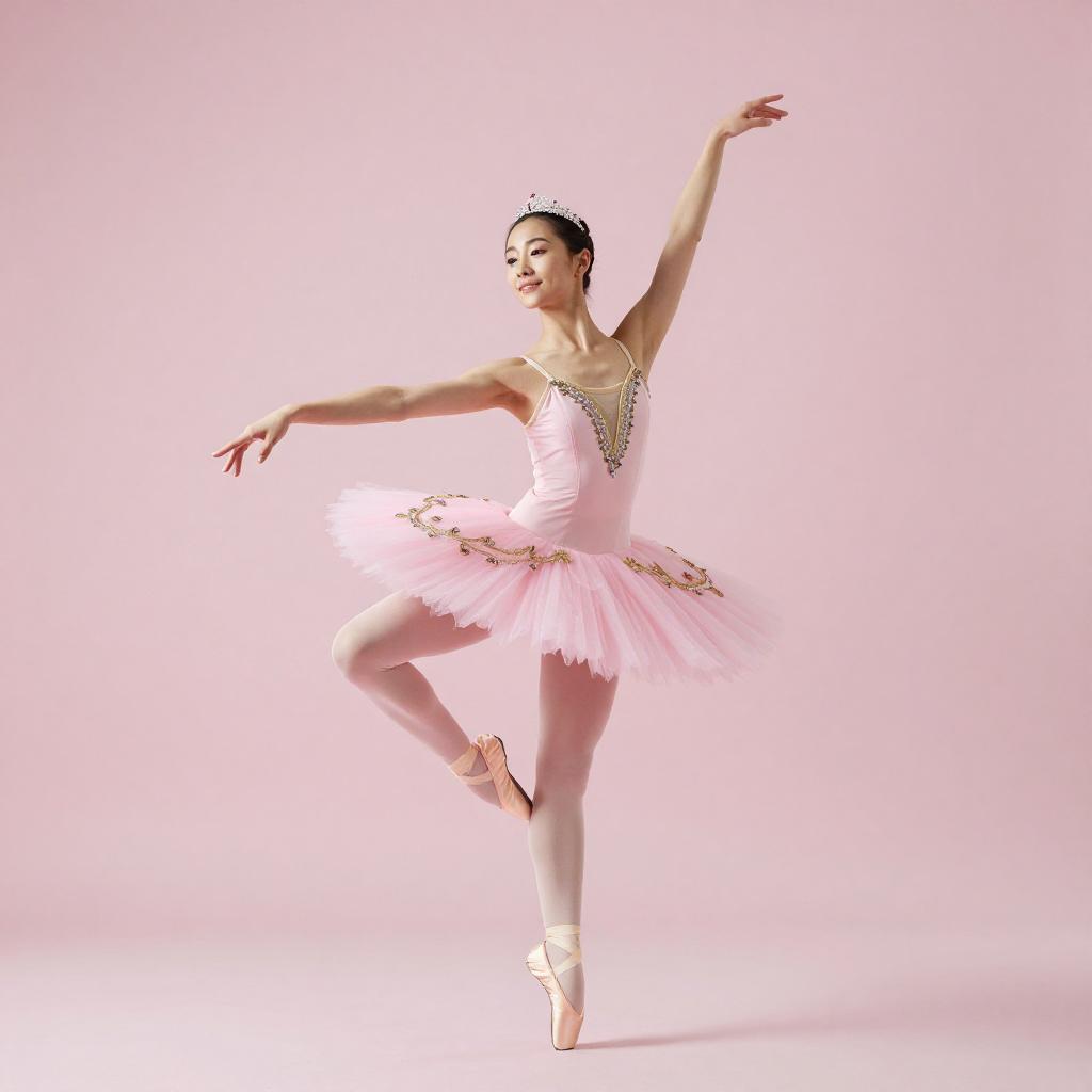This enchanting image features a graceful ballet dancer in a stunning pink tutu and tiara, set against a soft pink background. The dancer's poised expression and elegant pose capture the essence of artistry and femininity in the world of ballet.
