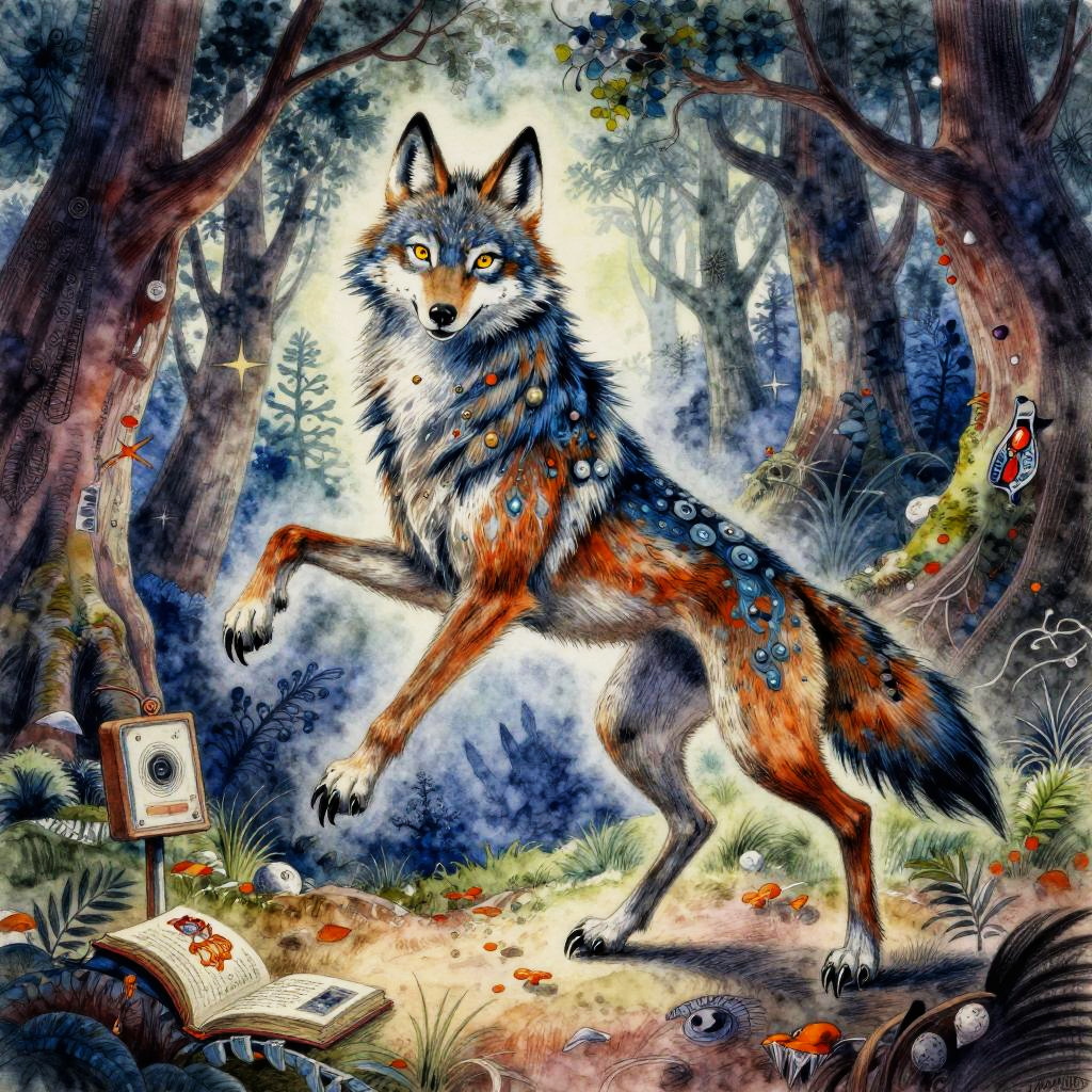 A dancing green centaur, legendary and magical, set in a mystical glade, inspired by Arthur Rackham, Masashi Kishimoto, Julie Bell, vibrant colors, highly detailed with watercolored pencil texture.