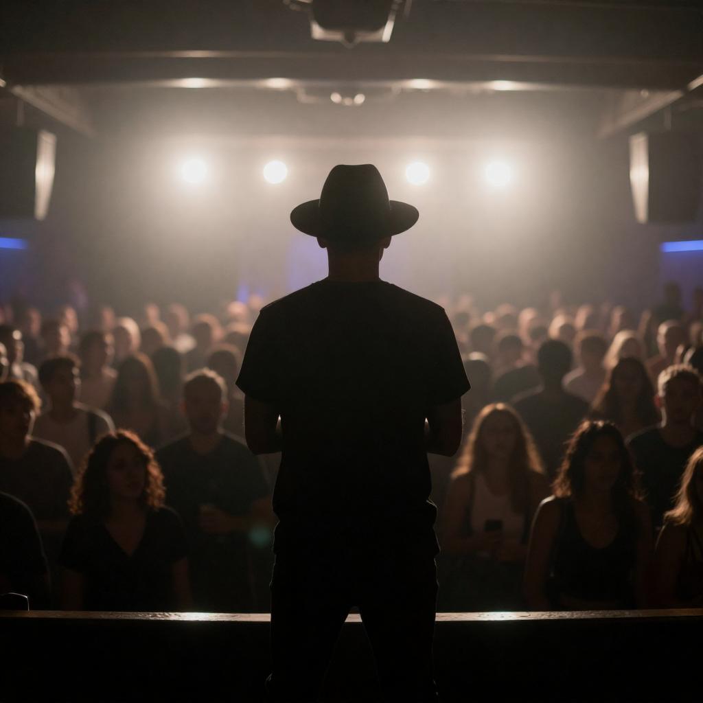 Photograph of a large outdoor party with diverse, dancing crowd. Central figures: man in white shirt, black jacket, another in red cap, white shirt, black jacket, and a woman in colorful pants. Green grass, scattered red cups, house with string lights in background. People of various ages, ethnicities, and outfits, joyful expressions, arms raised.