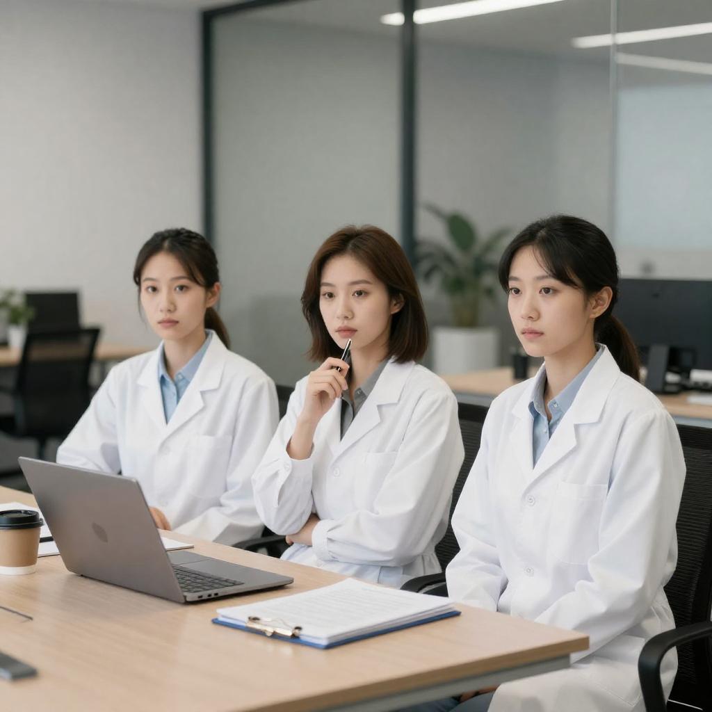 Mix4, Ray Tracing, realistic, photorealistic, detailed, realistic details, depth of field, professional lighting, lab, science fiction, (1 girl:1.3), dramatic lighting, from bottom, bent over, all fours, crawling, (realistic, photo-realistic:1.37), (8k, RAW photo, best quality, masterpiece:1.2), ultra-detailed, physically-based rendering, ultra high res, looking at viewer, full body, (lab coat, open coat, no bra), downblouse, looking at phone
