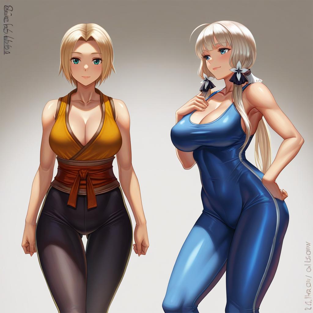 Monk (fft), final fantasy, 1girl, blue eyes, short hair, blonde hair, large breasts, cleavage, bare shoulders, unitard, unitard, by artist elleciel.eud, illustrious